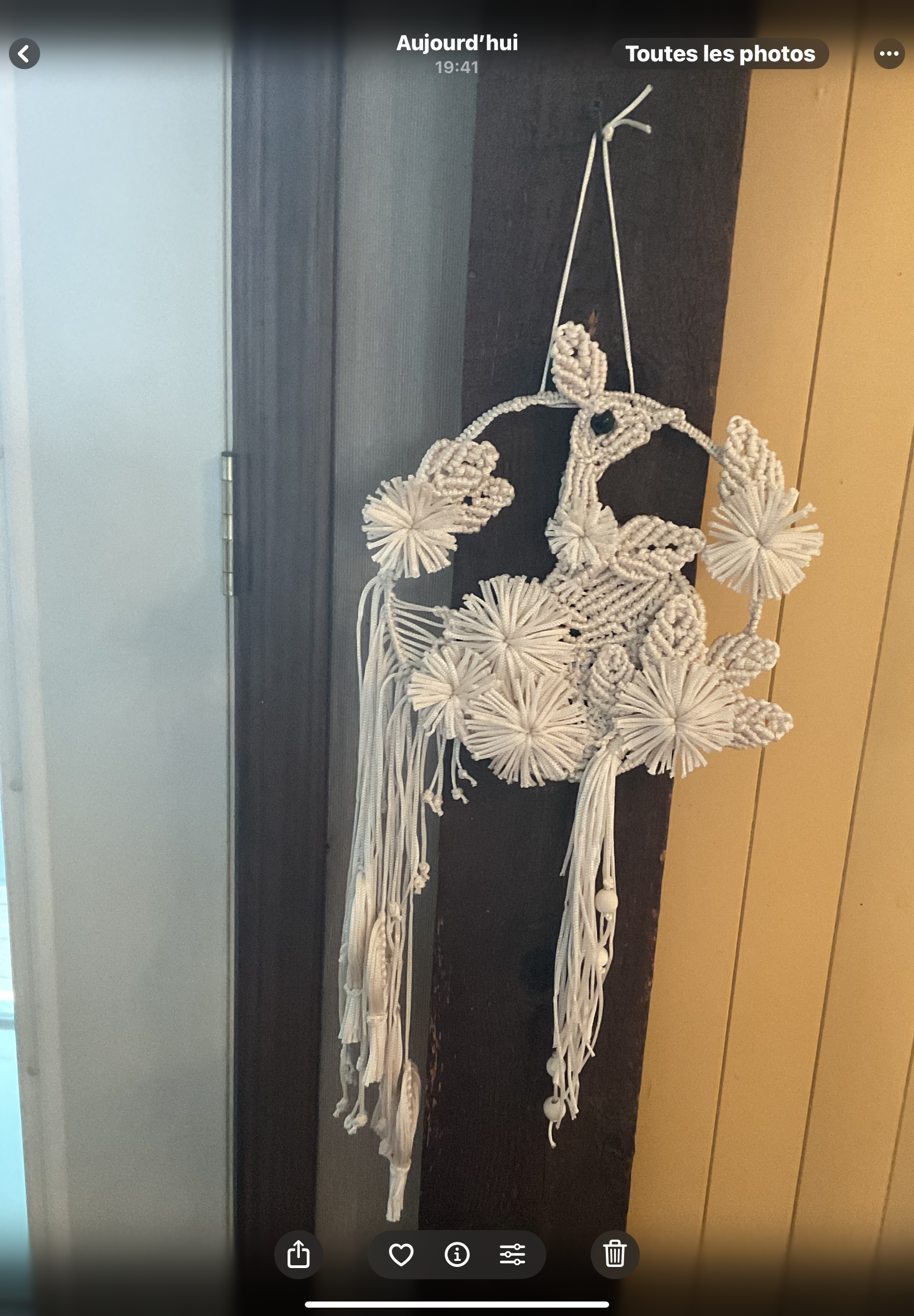 Décoration murale. corde coton blanc et plumes. 25cm x 50cm